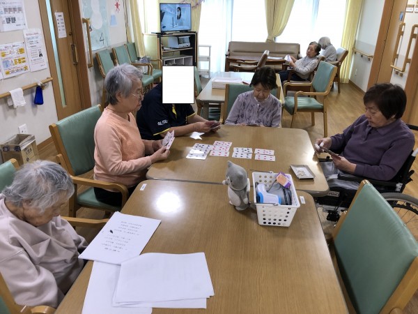 歌を歌われる方は歌詞カードをお渡し歌を、トランプの方がやりたいという方は7並べをされている際のご様子です。