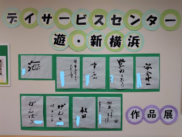 先日、書初めを行いましたが、その作品をデイサービス内に飾りました!