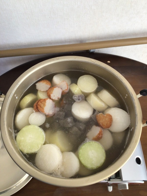 部屋の加湿も兼ねて食堂でおでんを炊きました。