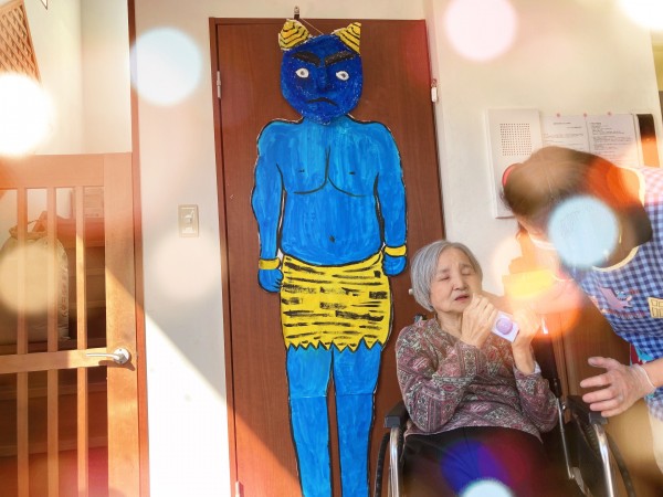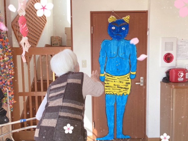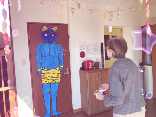 「鬼は外」「福は内」と掛け声して豆をなげてもらいました!!