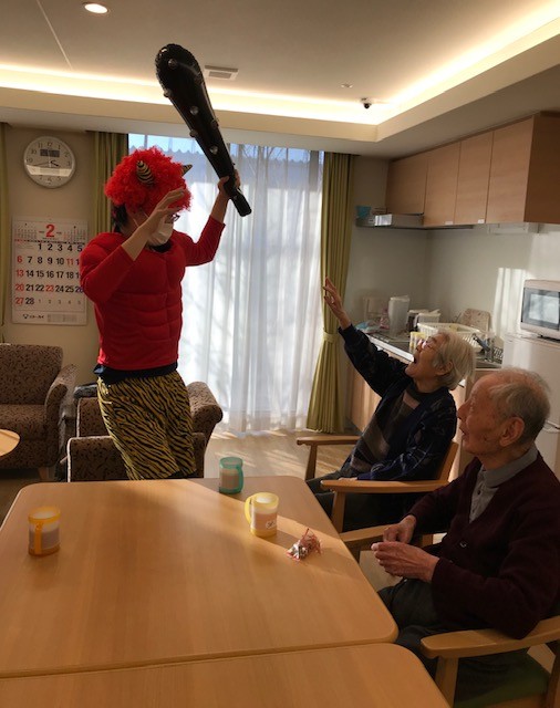 本日2月3日、アミカの郷船橋に赤鬼が来ました。