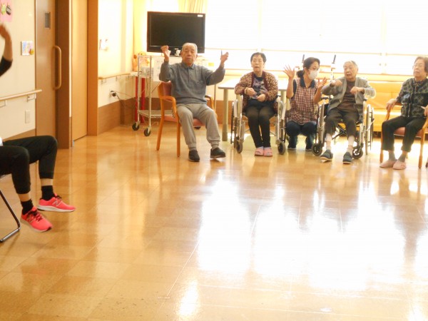 皆様 リズムにあわせて、元気よく張り切って手足を動かされ、いい汗をかいています♪♪