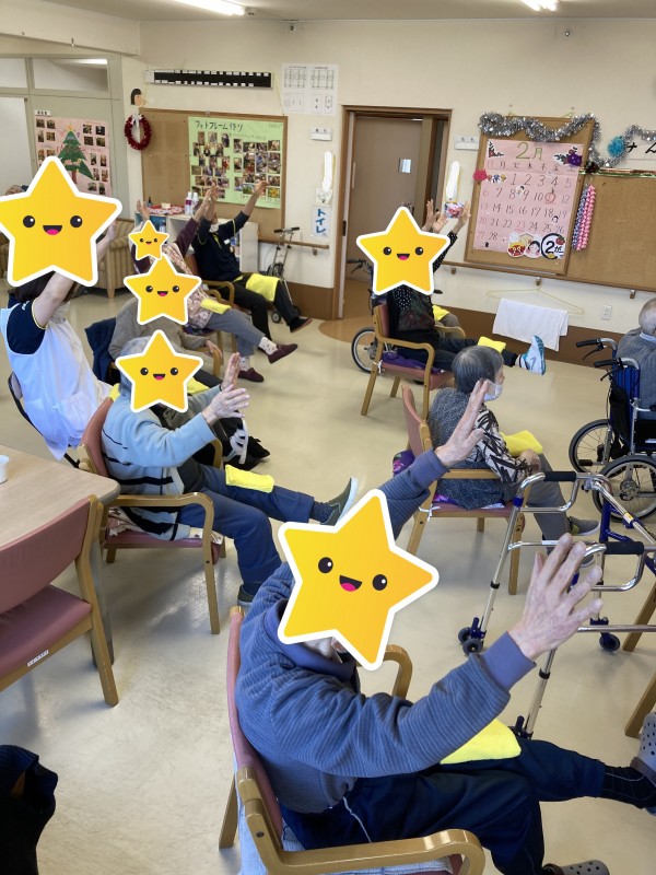 2月10日(金)、前日の大雪から一変すっかり晴れ渡り絶好の体操日和を迎え、リモート体操ではありますが、参加されたご利用者様達はTVの向こう側のトレーナーの掛け声・動きに合わせ、タオルを握って大きく身体を振ったり揺らしたりと、気持ち良さそうに過ごされていました。