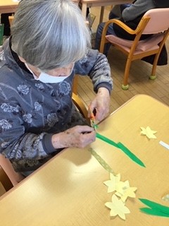 黄色と白の折り紙でかわいい水仙を作りました。
