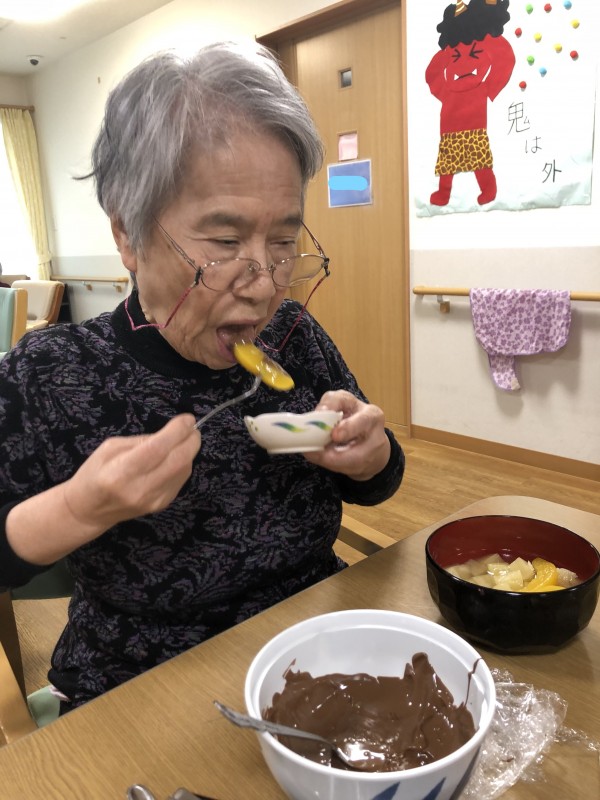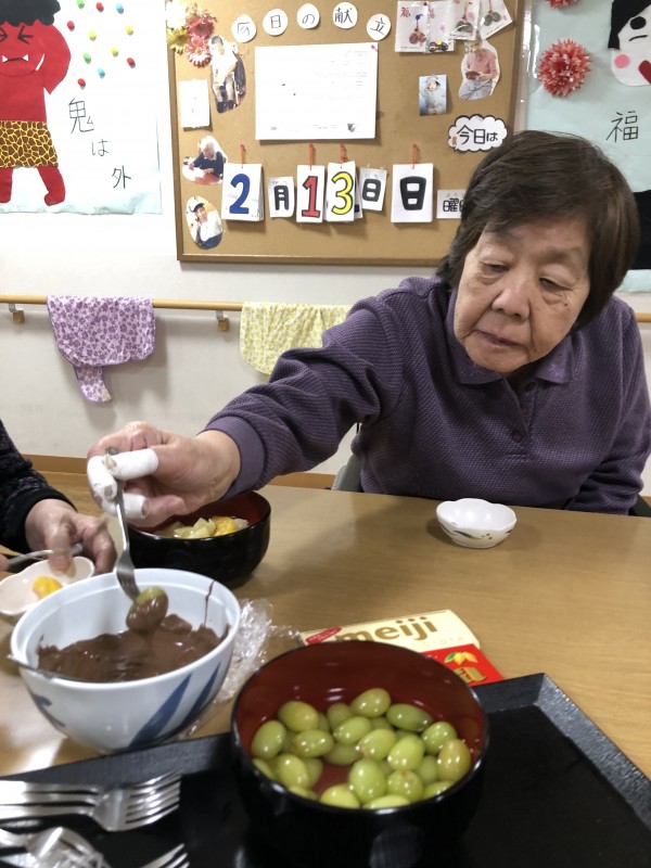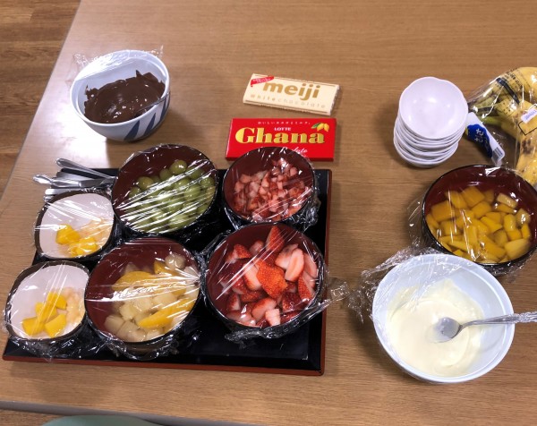 フォンデュが難しい利用者様はフルーツのチョコソース掛けになりましたが完食してくださいました。