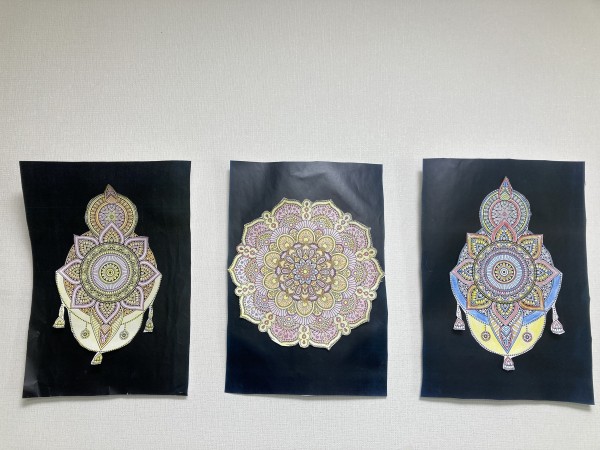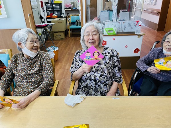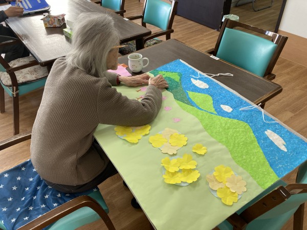 3月の飾りを製作中のN様。細かいちぎり絵見事です!!
