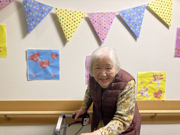 庭係が毎月飾っている玄関ですが、2月からご利用者様の塗り絵などの作品を展示する事になりました。各階の壁面飾りも一緒にご紹介します。ご利用者様とスタッフの愛と努力の作品をご覧ください。