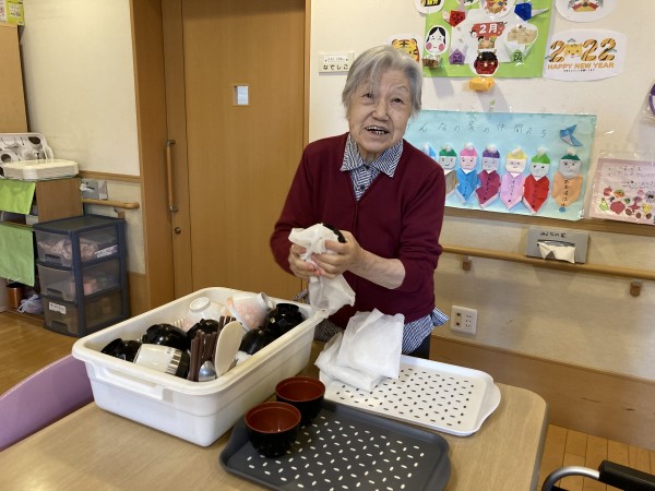 毎朝お手伝いで洗った食器を拭いて下さいます。お礼を言うと