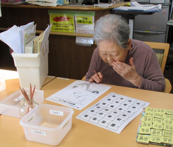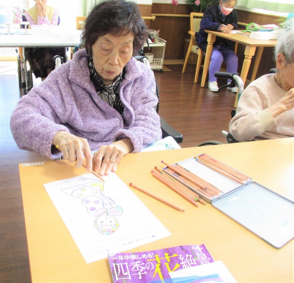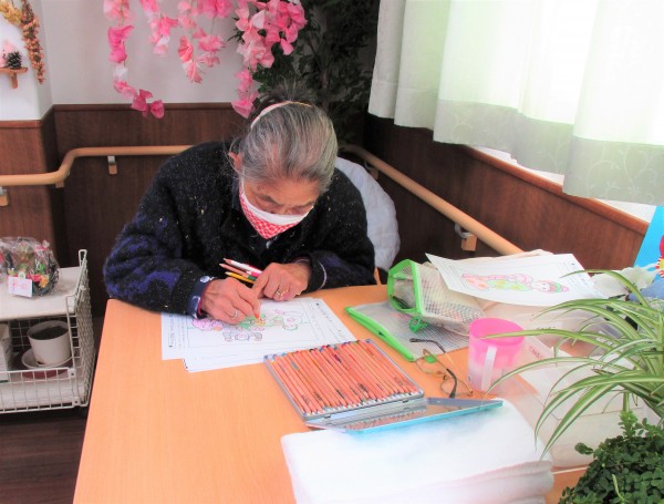 塗り絵、漢字の脳トレゲーム、テレビ鑑賞