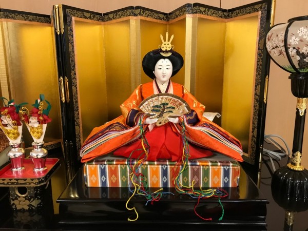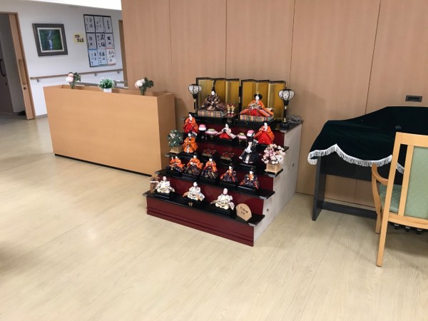 1階ホールに雛人形を飾らさせていただきました。