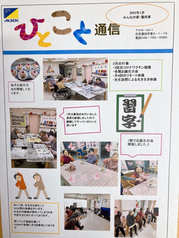 1月は書初め・リモートタオル体操・各階お誕生日会がありました♪