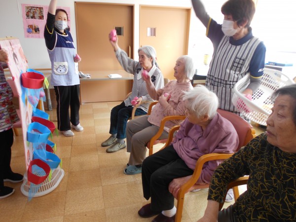 桜、桃にわかれスタッフ手作りの玉入れを開催!!!