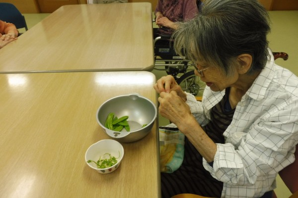 下ごしらえ「きぬさや」のすじとり。