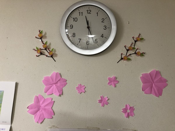 ホーム内にも、各所に少しずつ桜が咲き始めています。・・・どれもレクリェーションの時間にみなさんが作製してくださいました。