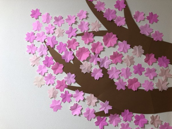 (写真左/上は3月14日にブログ掲載した桜、同右/下は現在の桜です。ご利用者様みなさんで作製されました。)