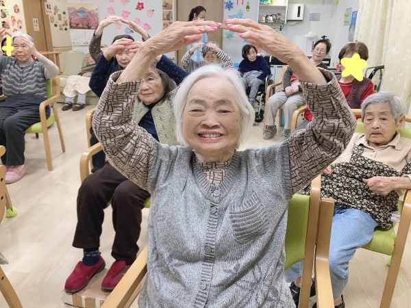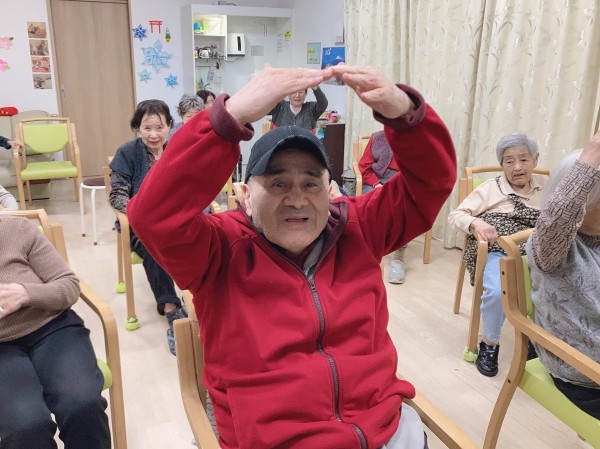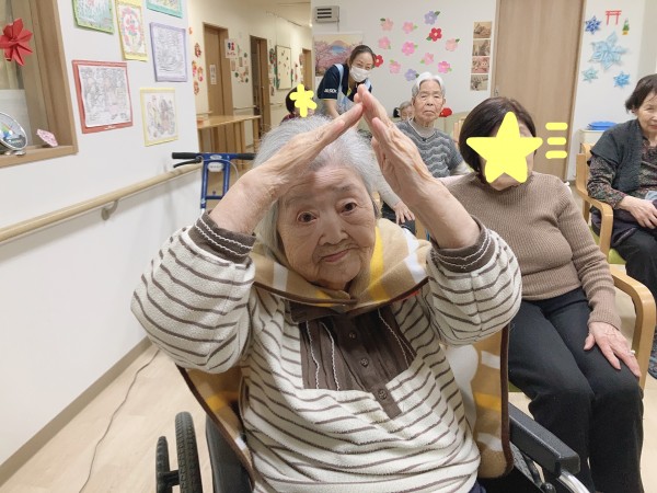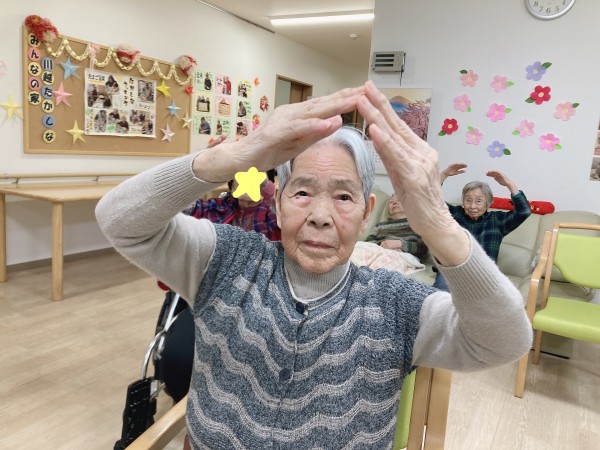 運動指導員さんから「元気になった人は大きな丸を見せてください!」と言われたみなさま。