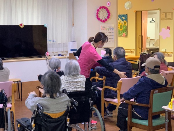 早川ケアスタッフも、お体が動かしきれないご利用者様にお声かけをします。