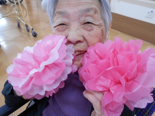 少し遅くなりましたが、桃フロアのご利用者の皆様で、お花紙で桜を制作しました(^^♪