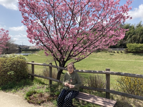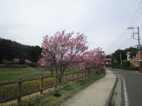 今年もホームの前のオカメ桜が咲きました♪ 濃いピンク色でキレイです(^^)