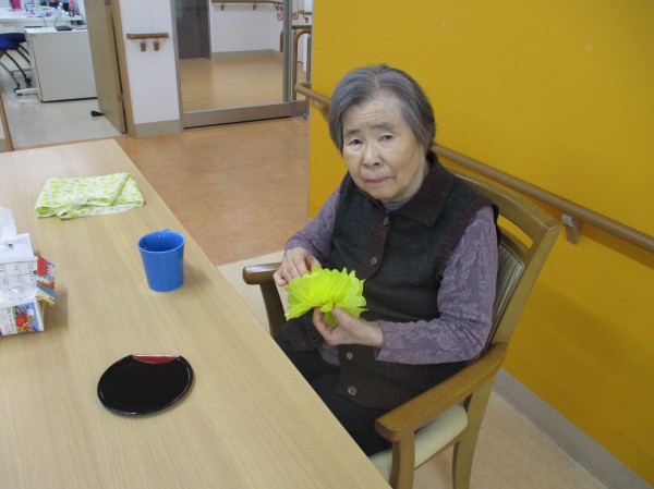 あるフロアのご利用者の皆様にぺーパーフラワーを制作していただきました。 皆様、「みんなで作ると楽しいね」と笑顔でおっしゃっていました。