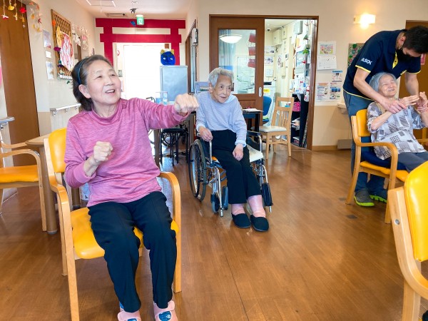 体が温まったところでノリノリな音楽に合わせていざ体操!