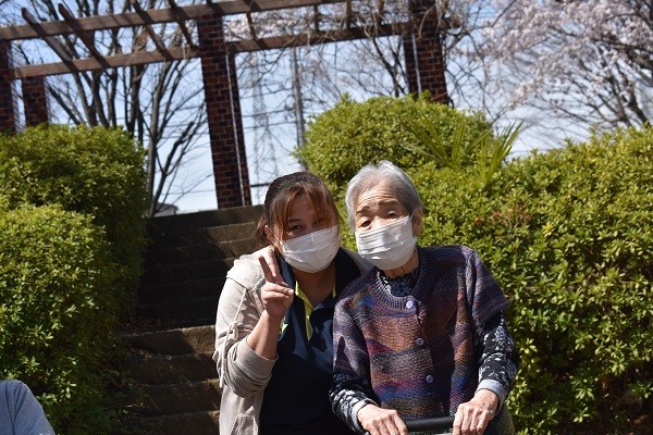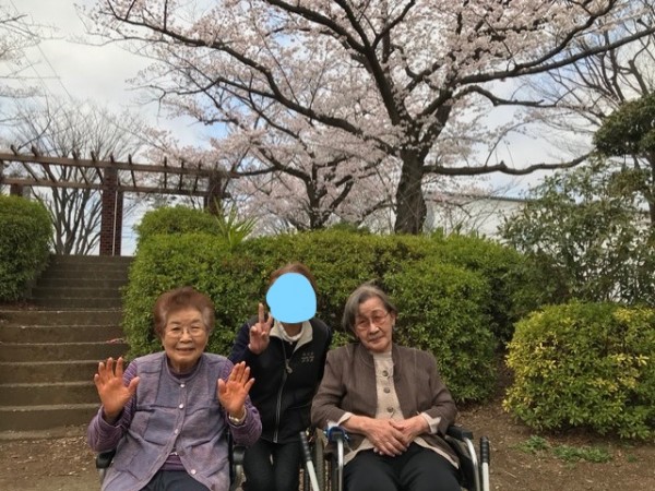 私たちの施設は目の前に立派な桜の木が植えてある公園が