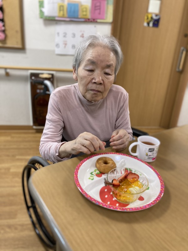 おやつ時間に、他の入居者様とスタッフ全員で”バースデー”をお祝いしました(^▽^)/
