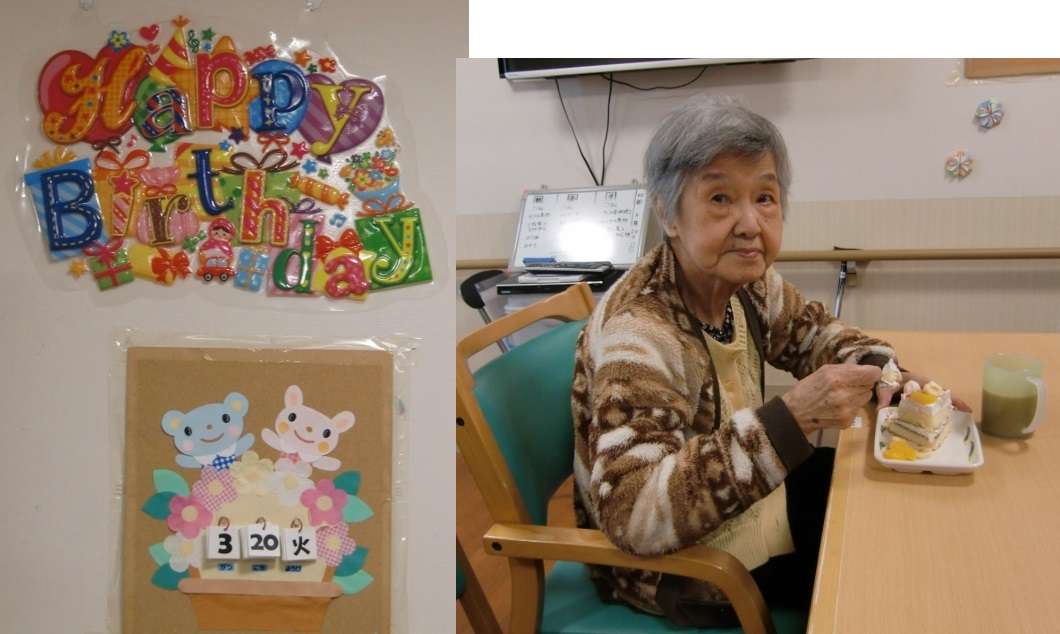3月20日(火)、2Fリビングにて3月のお誕生日会を行いました。
