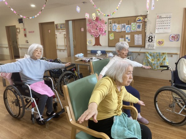 両腕の横に伸ばしたり、ばんざい\(^o^)/をしたりしました。