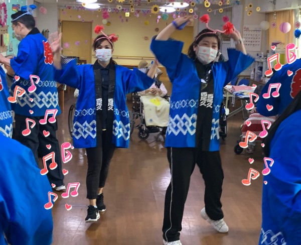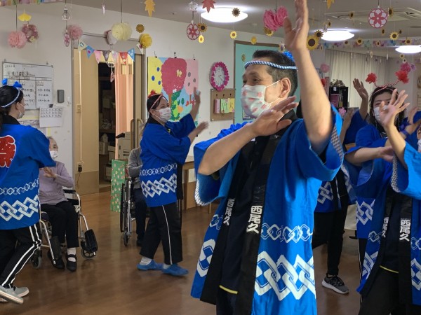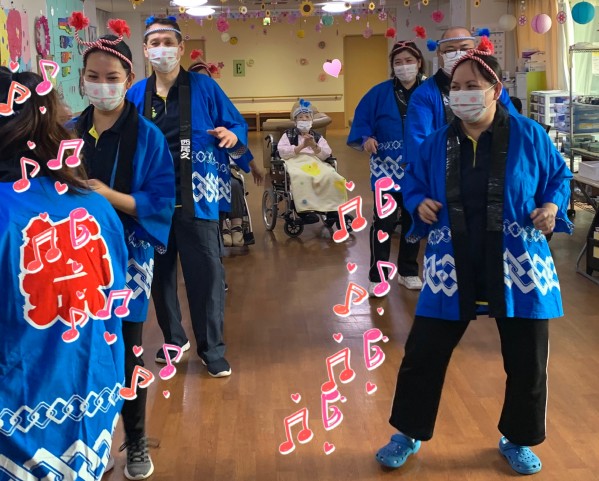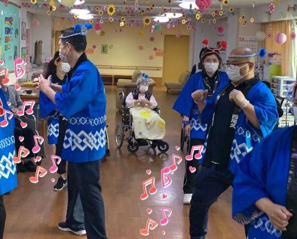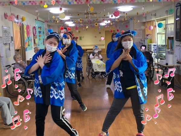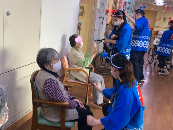順々にダンスをしたあとは、ご利用者様の元へ行き一緒に楽しみます。