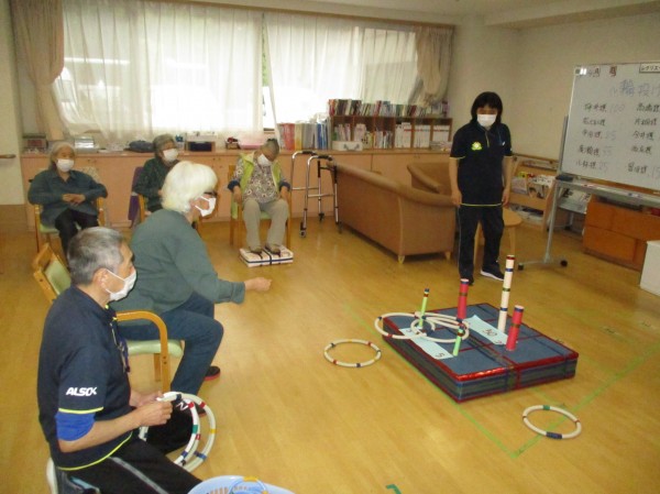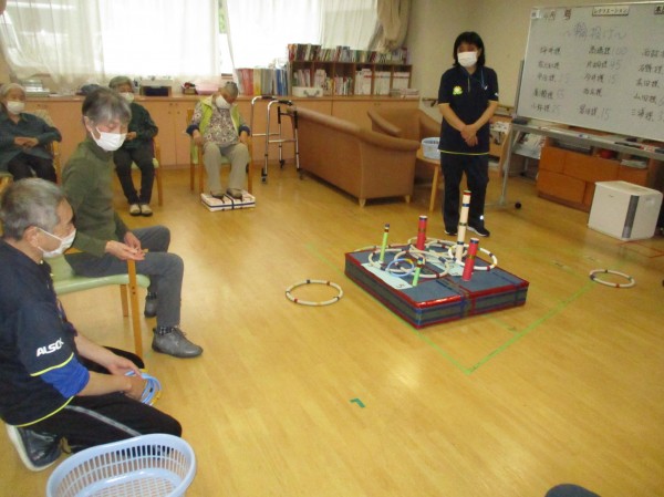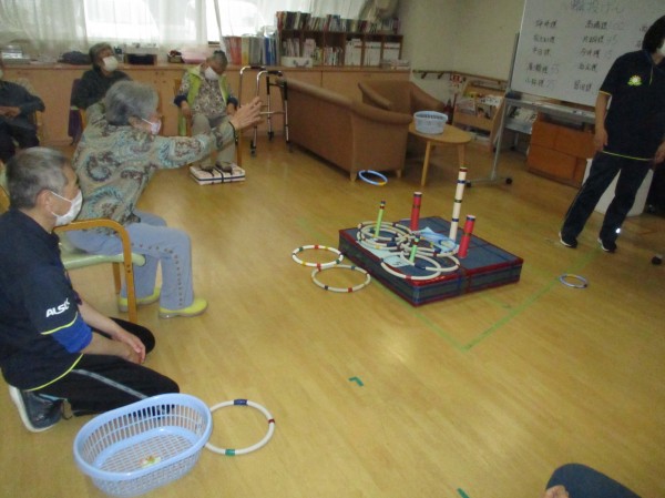 こんにちは!デイサービスセンター遊・西東京です!本日の運動レクリエーションは『輪投げ』です!