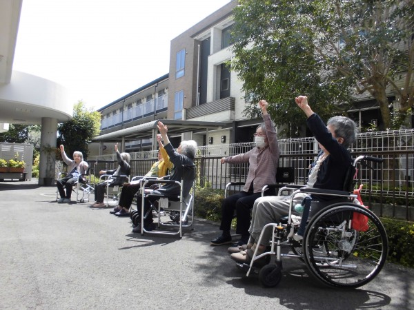 外に出て体操をしてみました。