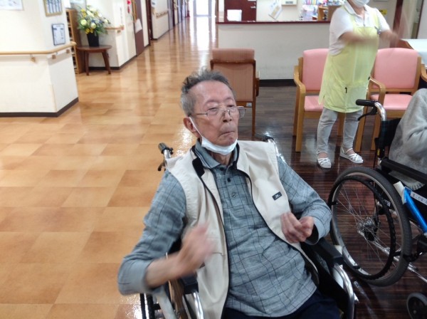 今日は「いきいきリズム体操リモート版」に参加しました。テレビ画面に集中!講師の動きと声、職員の動きに、皆さん一生懸命動かされます。