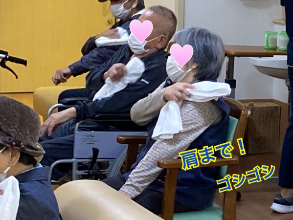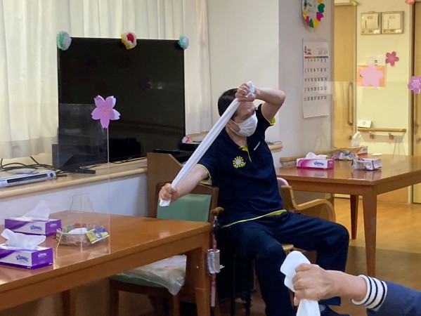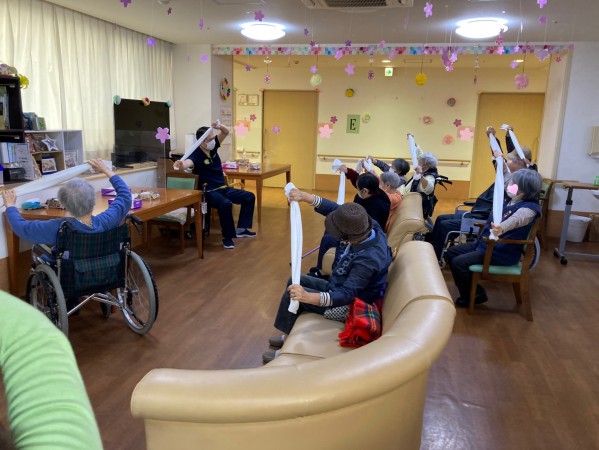 ご利用者様にも、職員にも、大人気なタオル体操。