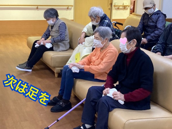 タオルを使って今日も楽しく体操です。