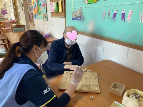 将棋が出来る安達リーダーがカッコイイなぁと思いながら見学をします。