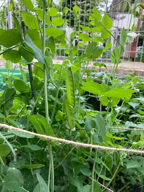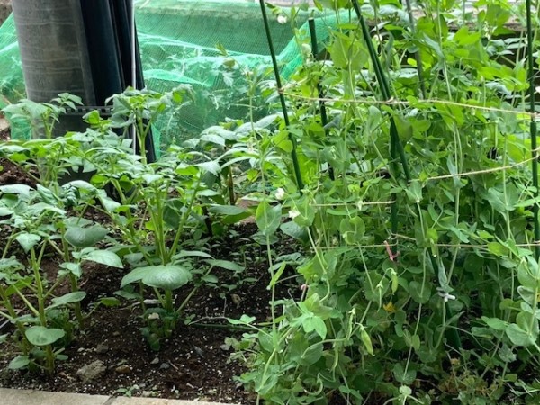 じゃがいもの葉と茎が急に伸びてきました。どれだけたくさんのじゃがいもが獲れてしまうのか、期待してしまいますが、せせらぎ畑の土は浅いので掘ってみるまでわかりません。そして、よく畑のお世話をしてくださる住民の方が植えてくださったマメ科の植物が収穫できるようになりました。そら豆とお伝えしておりましたが、「絹さや」でした。しばらくは収穫が楽しめそうです。