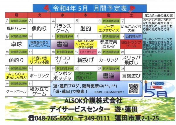 デイサービスセンター遊・蓮田☎:048-765-5500