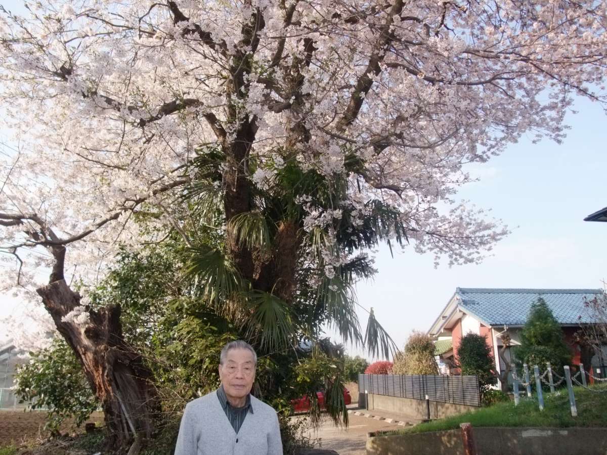 お!桜の木と一緒に記念撮影!