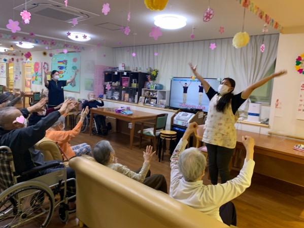 元気な2人の先導に、ご利用者様も元気に体操してくださいます。