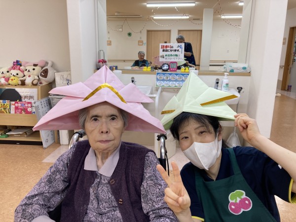 5月の行事(端午の節句)で、兜をかぶり、写真を撮りました。