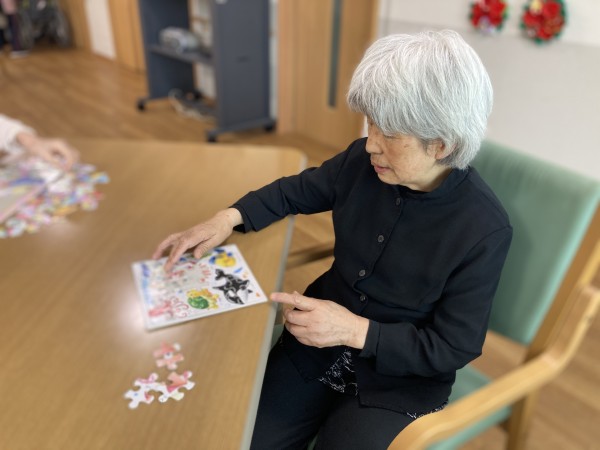 身体を動かすレクリエーションである体操はもちろん、脳トレの一環として、ジグソーパズルやぬり絵などにも取り組んで