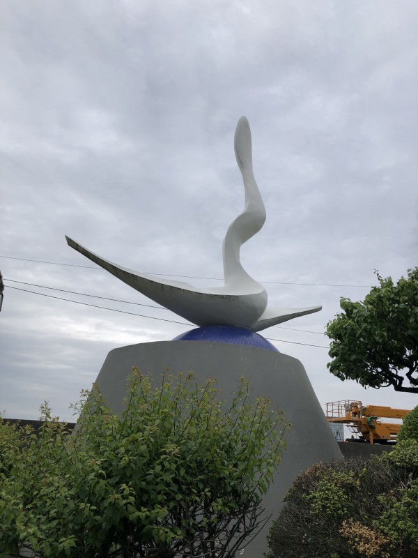 この「文学碑」は歌人・小説家として活躍した岡本かの子の業績をたたえて制作されたものですが、ひときわ私たちの目をひくのが「誇り」と名付けられたこのモニュメント(上掲写真右/下)です。・・・かの子は大阪万博のシンボル「太陽の塔」を創った芸術家・岡本太郎の母であり、このモニュメントは岡本太郎の作品だそうです。そして台座には「この誇りを亡き一平(太郎の父)とともにかの子に捧ぐ 太郎」と銘が刻まれています。