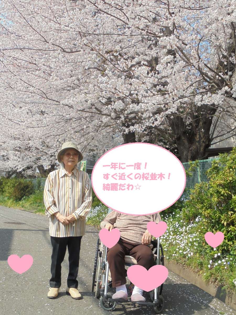 さくら~さくら~♪野川南台にも桜の季節がやってきました(^O^)/近くの公園の周りに桜の木が一杯!!施設の窓辺からまだかな~と眺めていたら、気づけば満開( ^^) _U~~