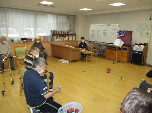 こんにちは。デイサービスセンター遊・西東京です。今日の運動レクレーションは『ペタンク』です。