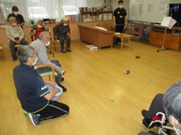 重心が不安定な缶をうまく点数の高いゾーンに投げ止めて高得点を競いました。皆さん投げ方や力加減を工夫しながら頑張られました。さあ・・・勝つぞ!!!