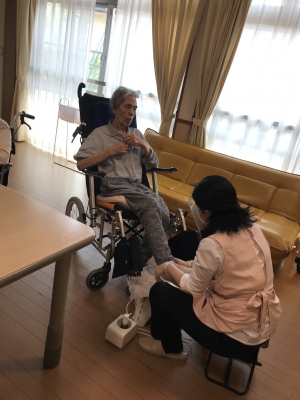 アロマオイルなども使い、シニアセラピーを受けられた後の入居者様は