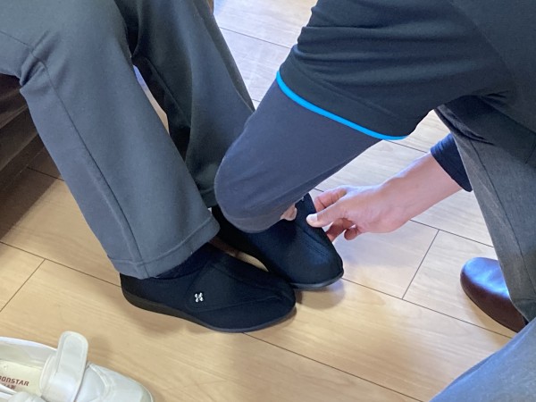 今回は入居者様が靴を試し履きしている様子をお届けします(^^♪