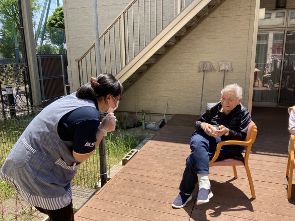 先日1F全員、テラスに集合しました!