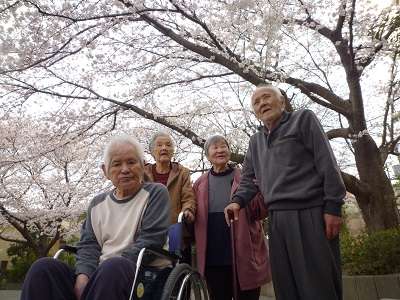 ![]() 「キレイに咲いているわね~」 | ![]() みんなで仲よく カシャッ! |